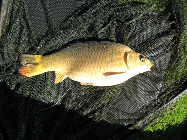 Things started well, and carried on at a frantic pace. As soon as I chucked the ledger out, another bite happened. It was great fun, and although the carp were small, they fought like mad, and it was real struggle to get them in.
